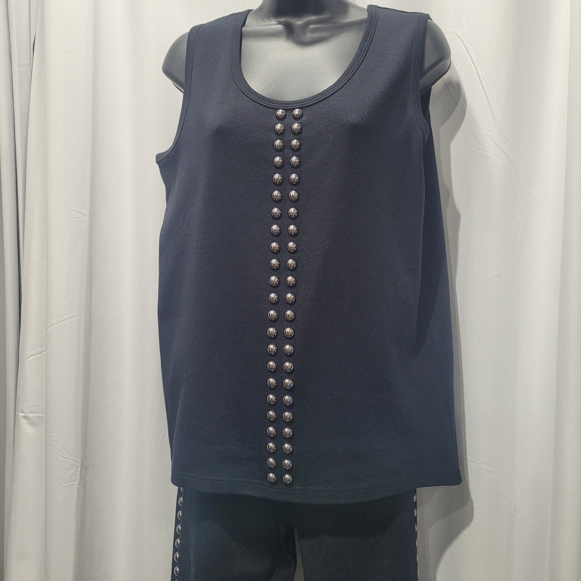 This beautiful tank top matches the Black Pants With Metallic Details and the Black Coat With Metallic Details.