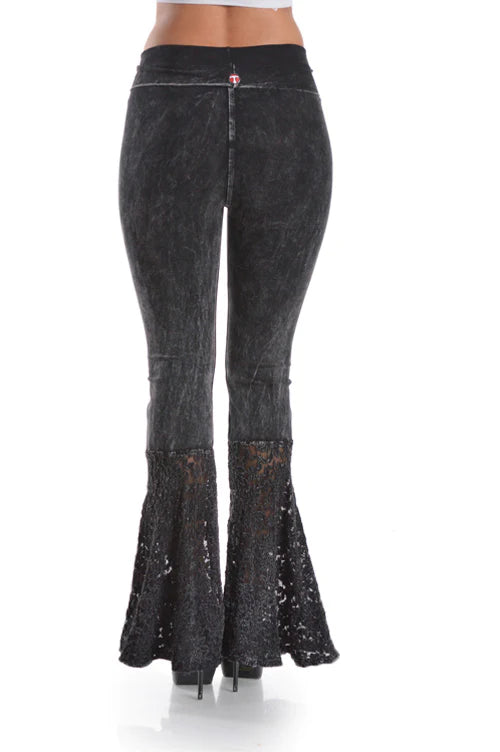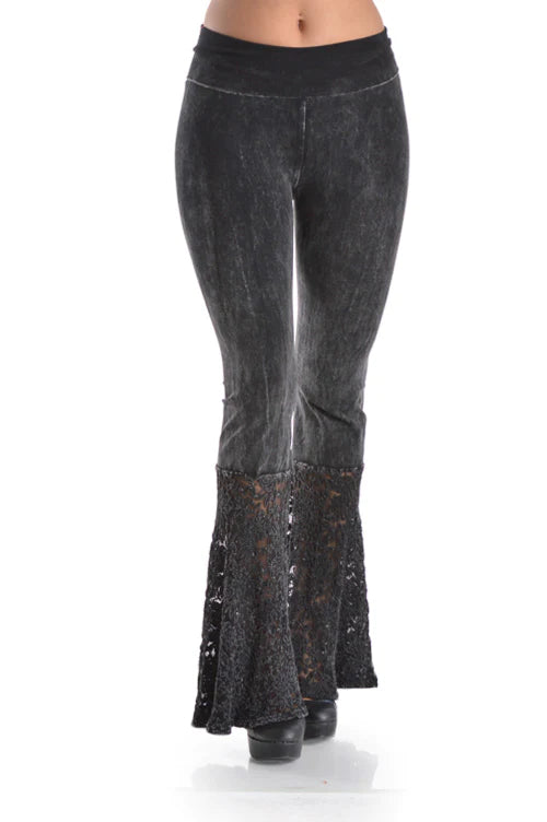 Black Yoga Pants with Lace Bell Bottoms