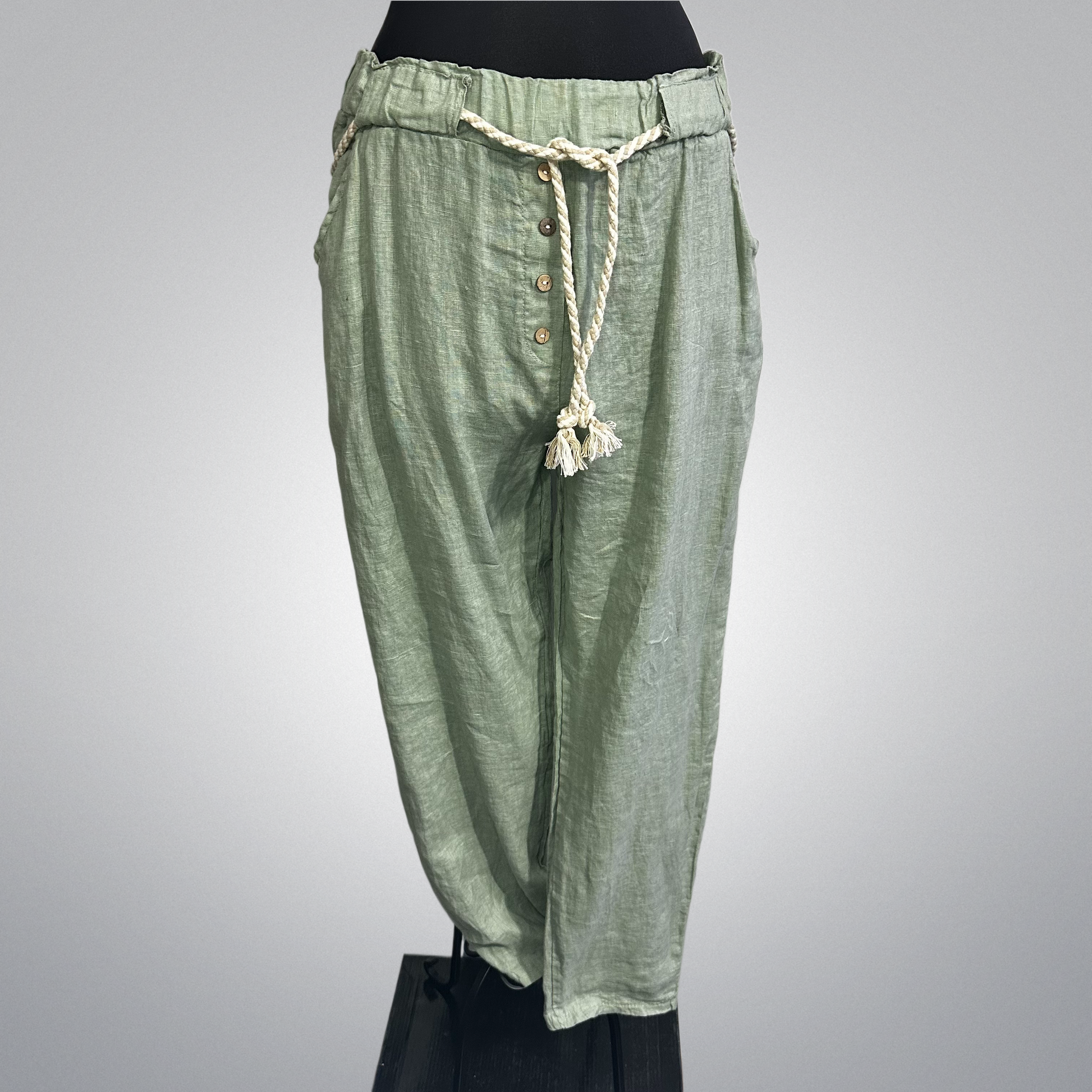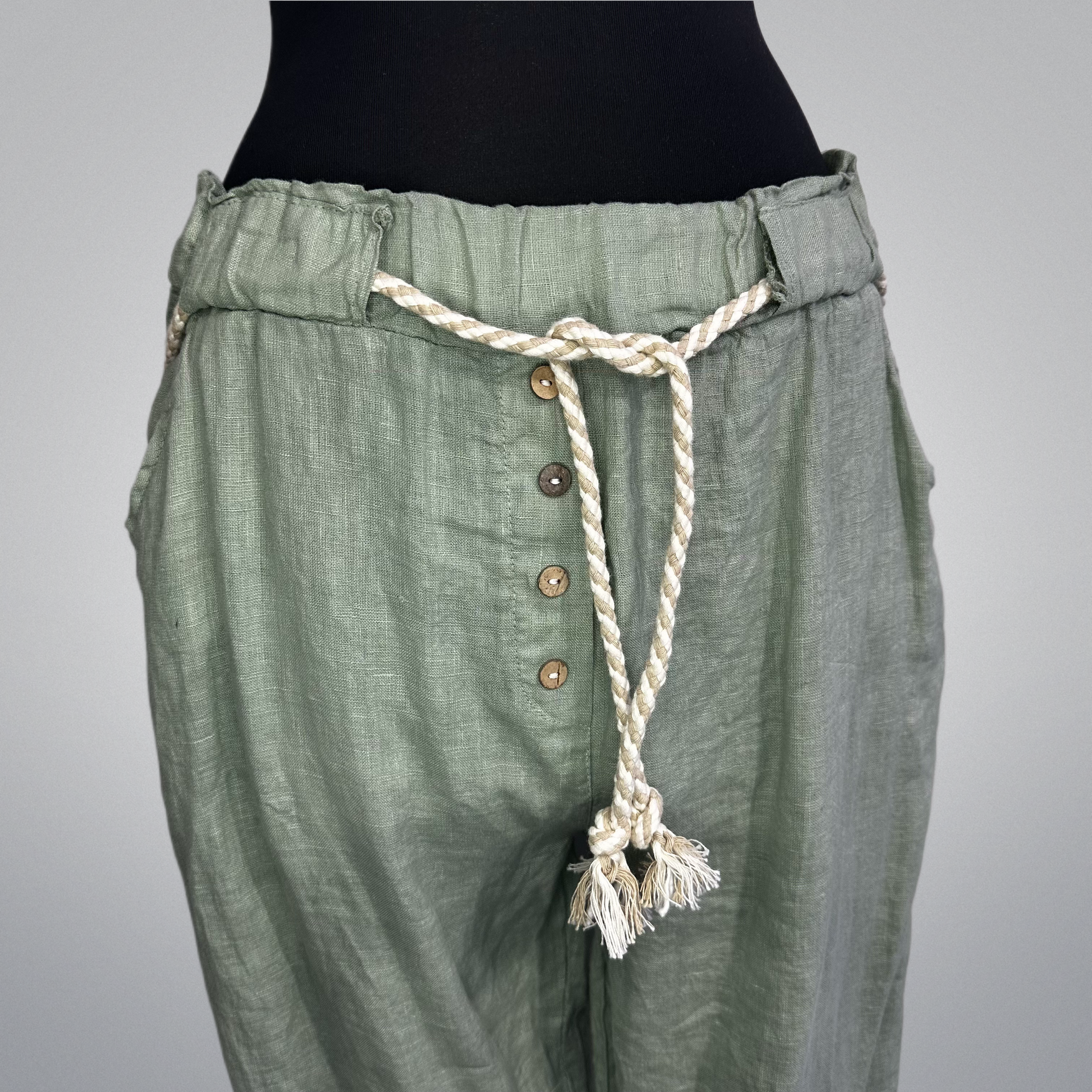 Featuring a braided two-toe rope belt that you can knot, this item is perfect to pair with sneakers or flat sandals and a cotton or linen top for a relaxed, everyday fit.