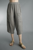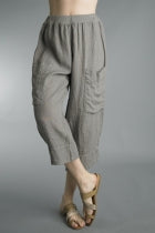 Dark taupe Italian linen crop pants with deep front pockets. This cute and comfortable pants is a must for any wardrobe.