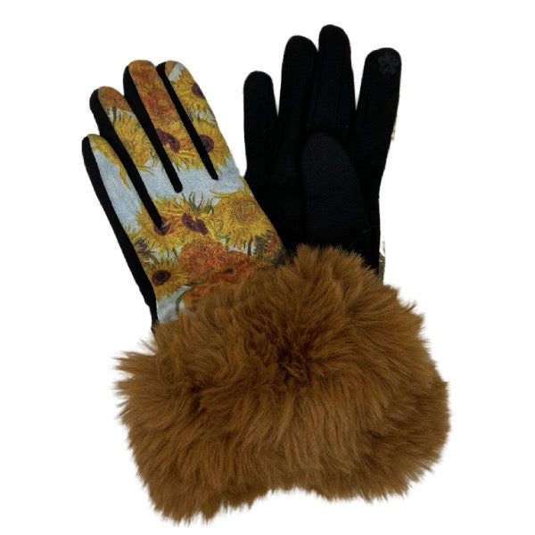 Fur Trimmed Art Design Touch Screen Gloves