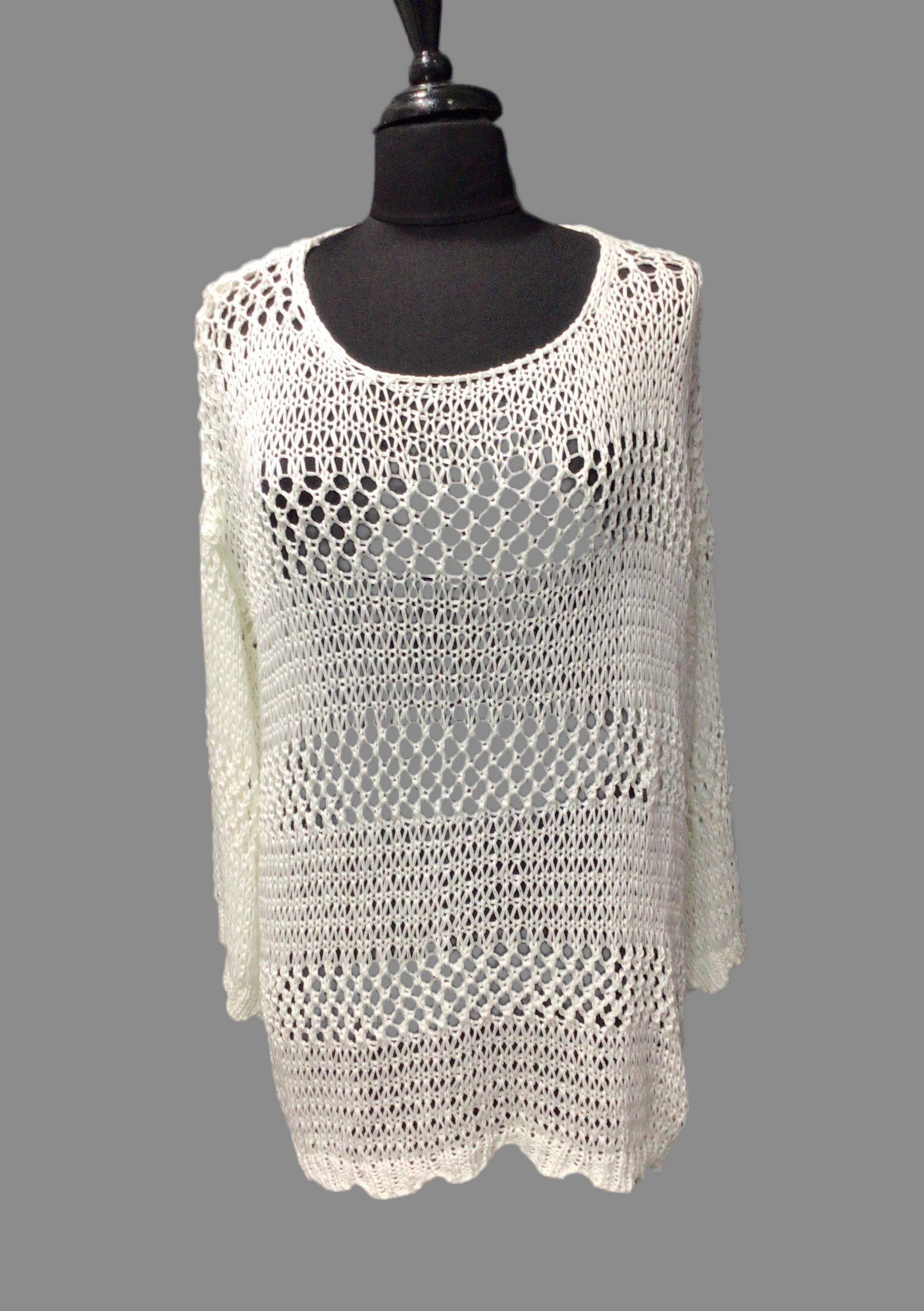 This sweater made from a loose knit is perfect over a tank top, both as a finishing touch to the outfit or as a full top on a very hot and humid day.