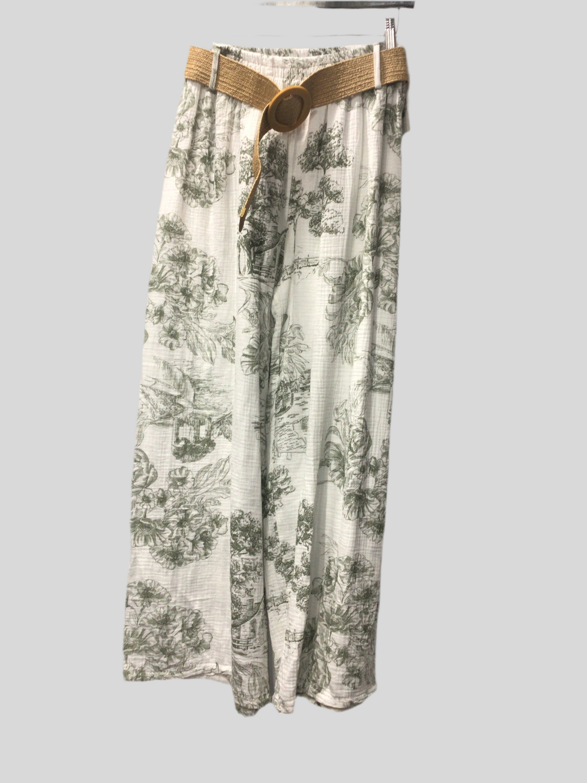 Easy to wear, these palazzo style, wide leg Italian printed pants will be one of your favorites. They are made from a very soft, lightweight and breathable Italian cotton gauze and come in 3 great colors.
