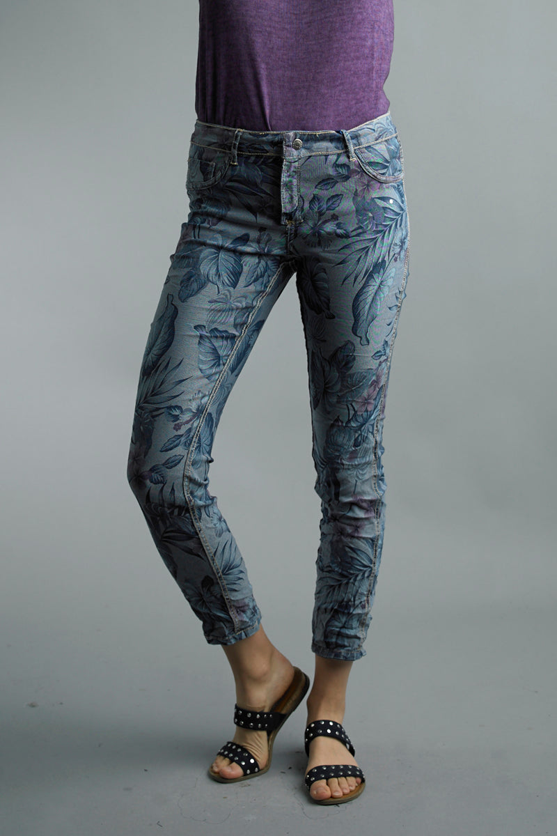 REVERSIBLE JEANS??? That's right, these soft Italian cotton jeans actually reverse offering a solid color on one side with a fun floral design on the other side. This is the perfect piece for traveling! Stretchy, comfortable and fashionable.