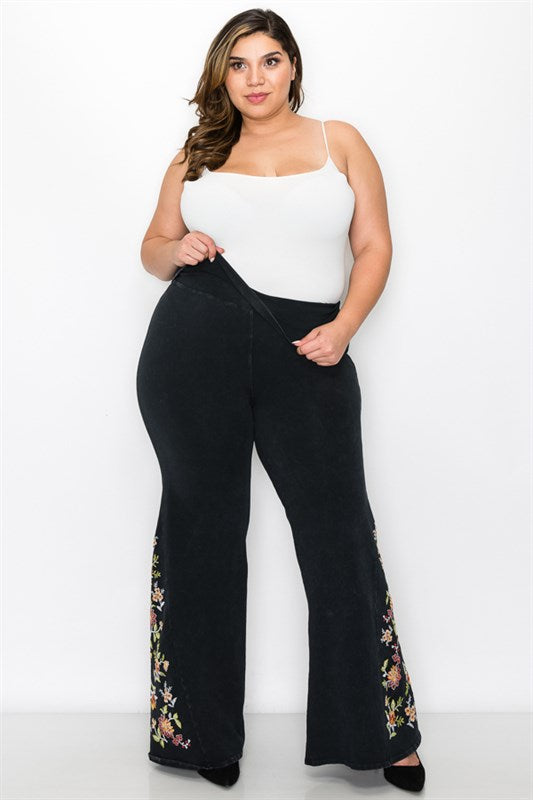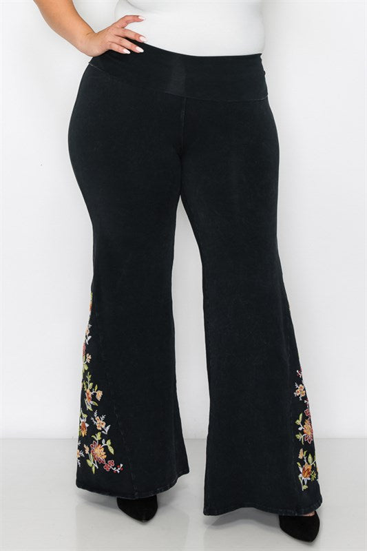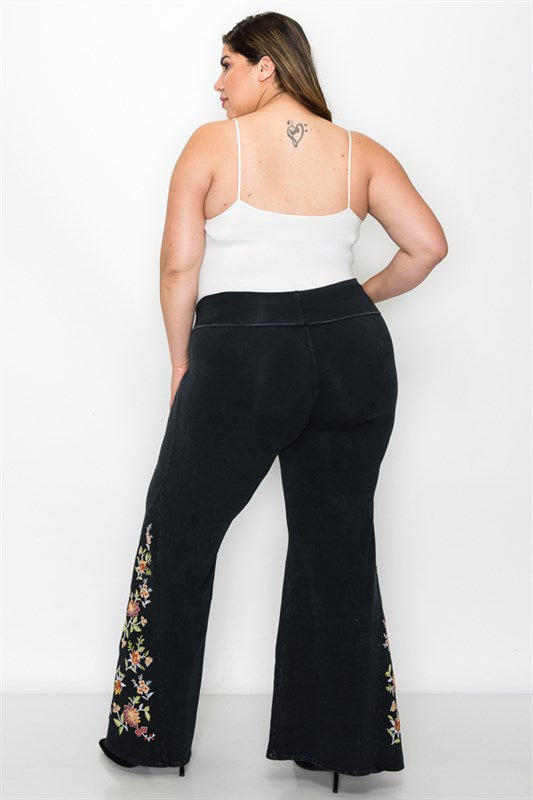 Plus-Size Embroidered Bell Bottom Yoga Pants