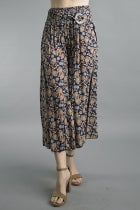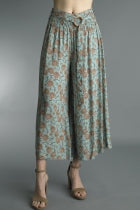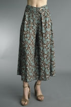 These gaucho pants are a classic piece that can be dressed up with heels, or dressed down with sandals. With a comfortable and easy fit, these gaucho pants are sure to compliment and flatter any figure. The wooden buckle side belt adds an additional flare of fashion style.