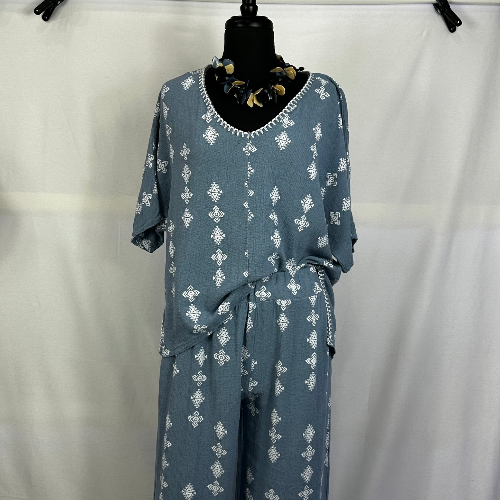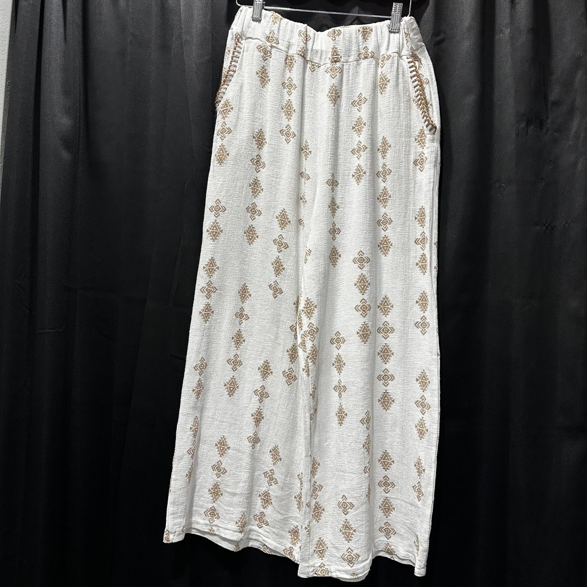 Some fun printed pants but keeping the colors neutral so you can wear them with everything! They are perfect for a windy day at the beach or for a vacation night out! They will pair amazingly with low sandals or heels.