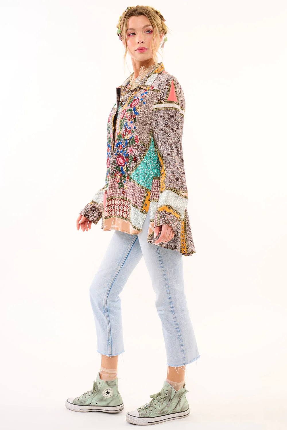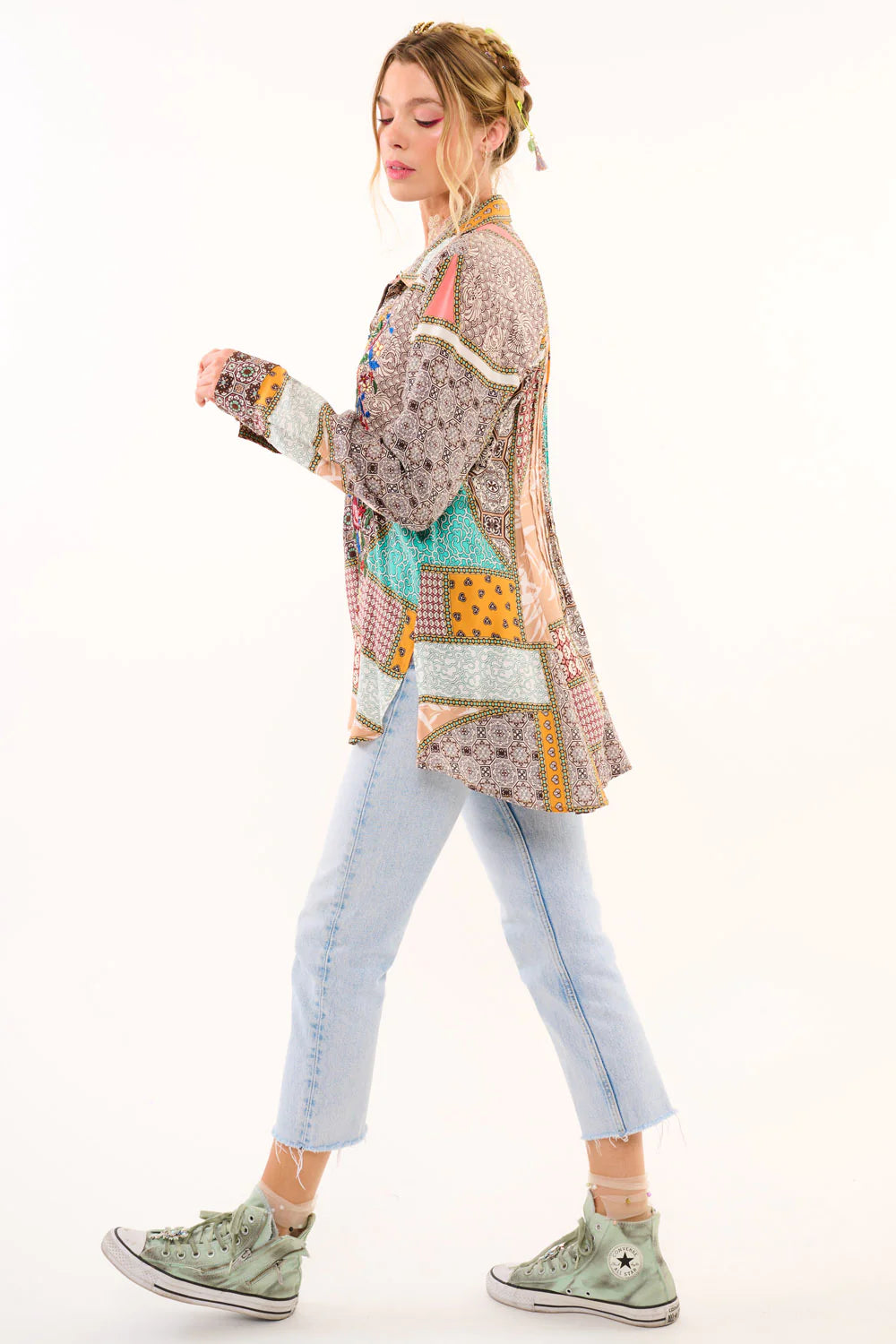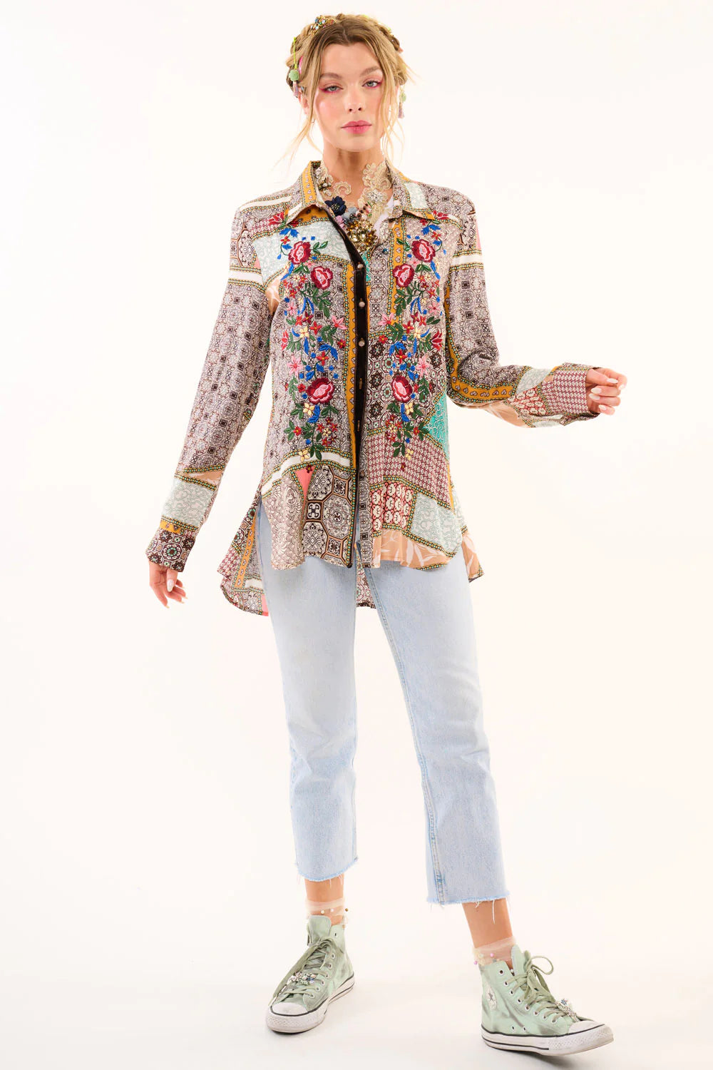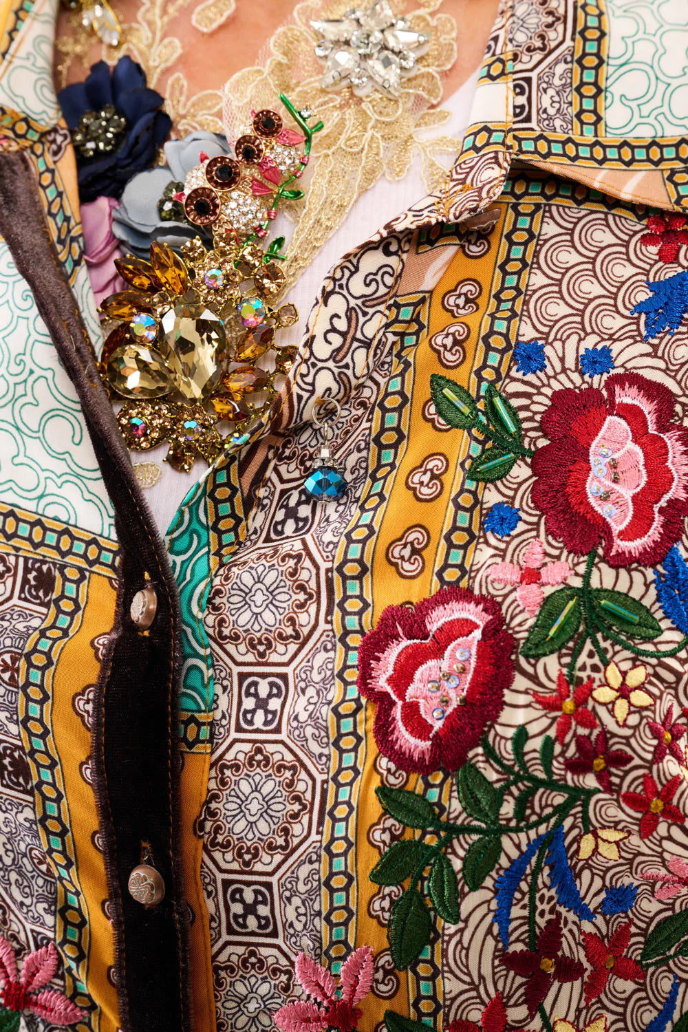 With this shirt you will not need to add anything else to your outfit to make it special. It has the most amazing embroidery, beading and pintuck back.