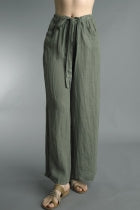 Dark Olive Waist Tied Linen Pants