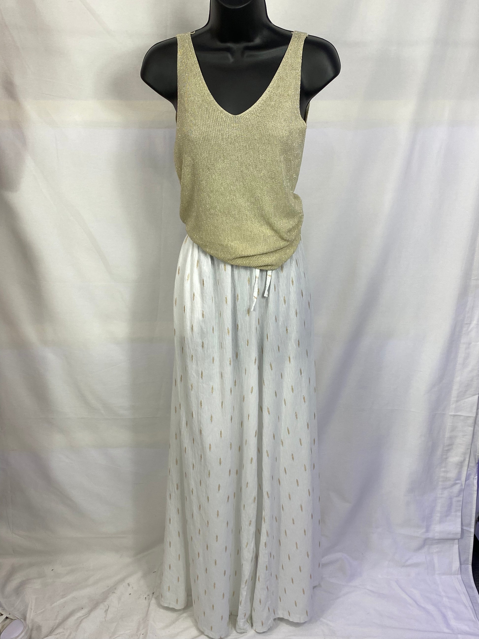 White Cotton Pants With Gold Accents